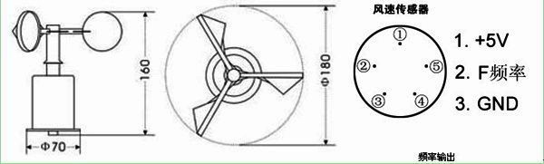 風(fēng)速傳感器的感應(yīng)元件是三杯風(fēng)組件,由三個(gè)碳纖維風(fēng)杯和杯架組成。轉(zhuǎn)換器為多齒轉(zhuǎn)杯和狹縫光耦。當(dāng)風(fēng)杯受水平風(fēng)力作用而旋轉(zhuǎn)時(shí),通過活軸轉(zhuǎn)杯在狹縫光耦中的轉(zhuǎn)動(dòng),輸出頻率的信號(hào)。